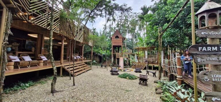 Baan Rai I Arun ist ein idyllischer Farmstay und Café in Kapoe, Ranong, entworfen von einem lokalen Architekten und umgeben von üppiger Natur, Bächen und Gärten